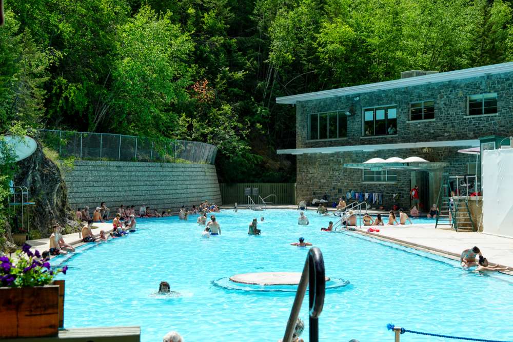 Next, we have Radium Hot Springs pools on the border of Kootenay National Park. An affordable and safe way to soak yourself in the hot tub without having to hike or book a stay at a hotel.