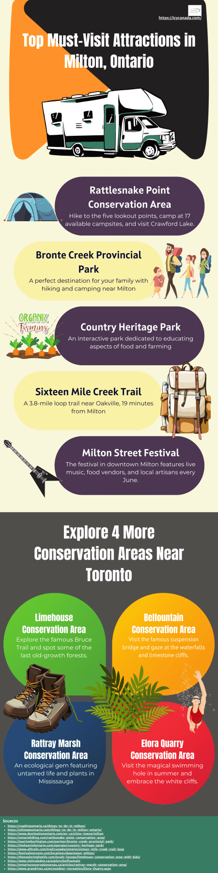 This is one of the best places in the Milton area to watch the different shades of falls. During winter, sections of this hiking trail come close to the private downhill ski hills and get closed. Dogs are allowed on this hiking trail.